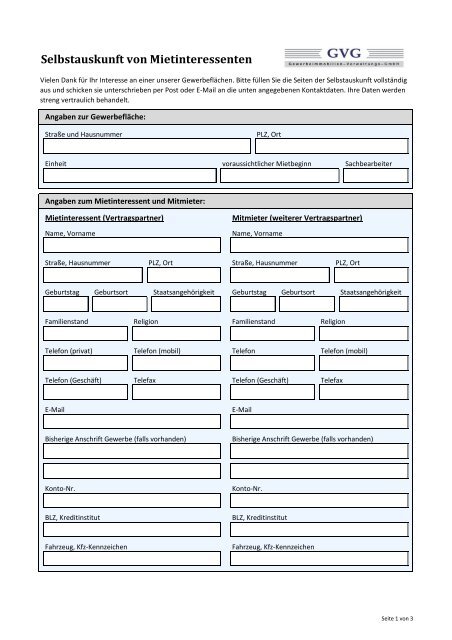 Selbstauskunft für Mietinteressenten Bitte vollständig ausfüllen bzw. Hauptgesellschafter ist die Erzdiözese München und Freising.